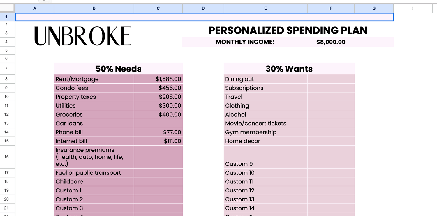 Your Budgeting Template (Google Sheets link)